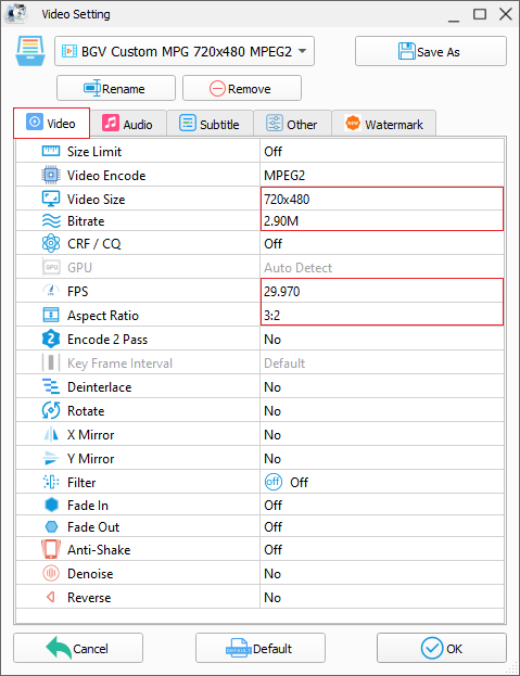 VIDEO SETTING: