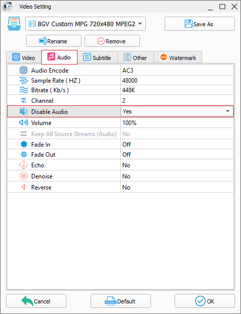 AUDIO SETTING: